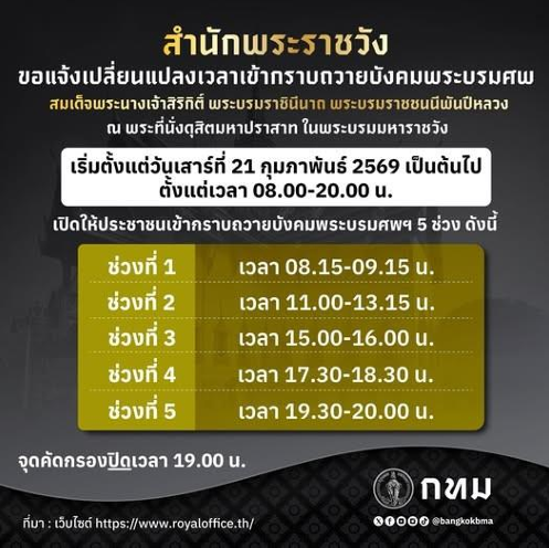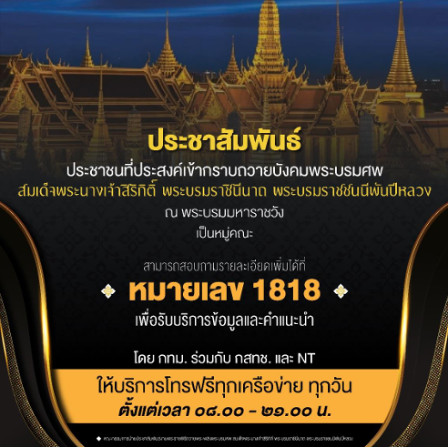 ประชาสัมพันธ์และประสานข้อมูลเกี่ยวกับการเดินทางมากราบถวายบังคมพระบรมศพสมเด็จพระนางเจ้าสิริกิติ์ พระบรมราชินีนาถ พระบรมราชชนีพันปีหลวง