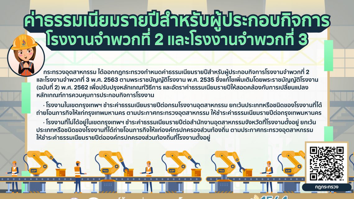 สอบถามข้อมูลเพิ่มเติมได้ที่ สายด่วนกรมโรงงานอุตสาหกรรม 1564